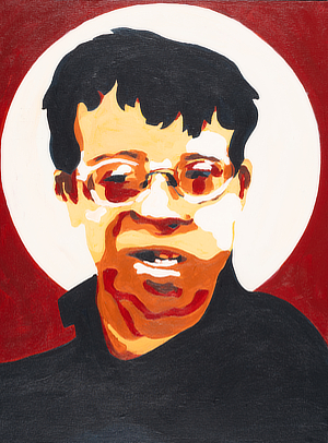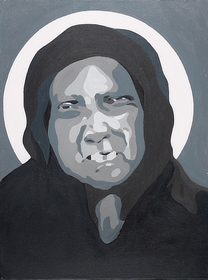 "The circle (halo) behind them represents the sacredness and wholeness of the individual as is, despite the demands or preconceptions of the world. The names displayed were chosen by those in the paintings.